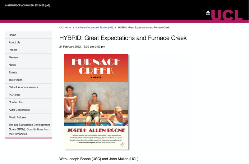 Joseph Allen Boone’s Furnace Creek, a Novel