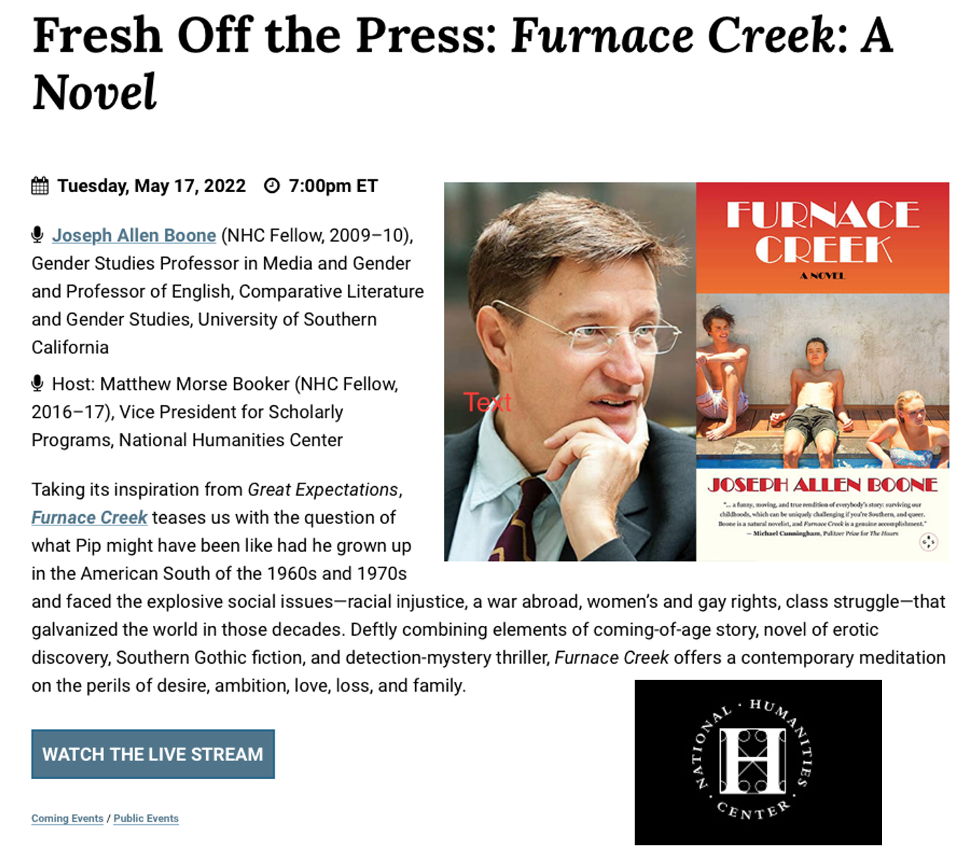 “Fresh Off the Press: Virtual Book Talk with Joseph Boone”